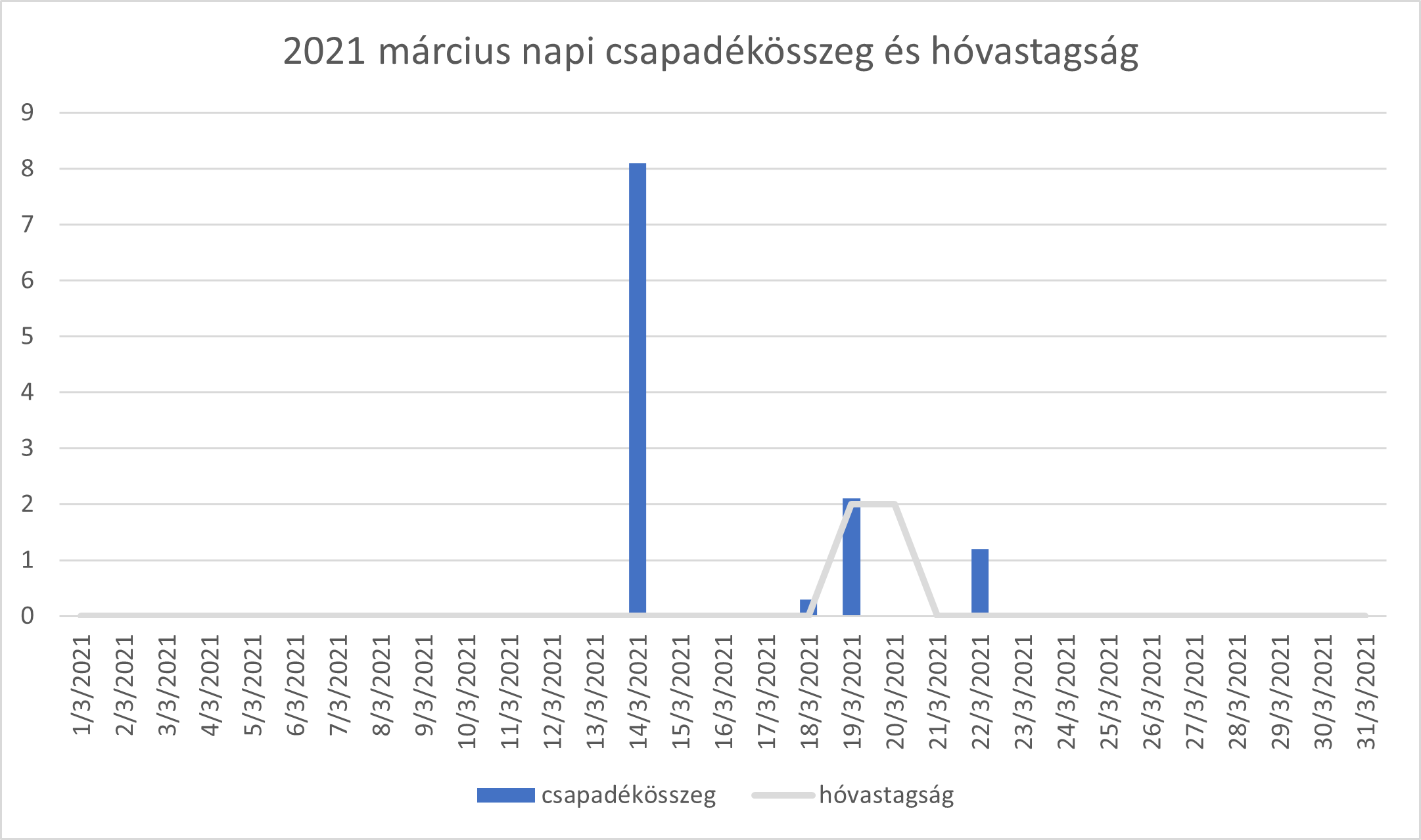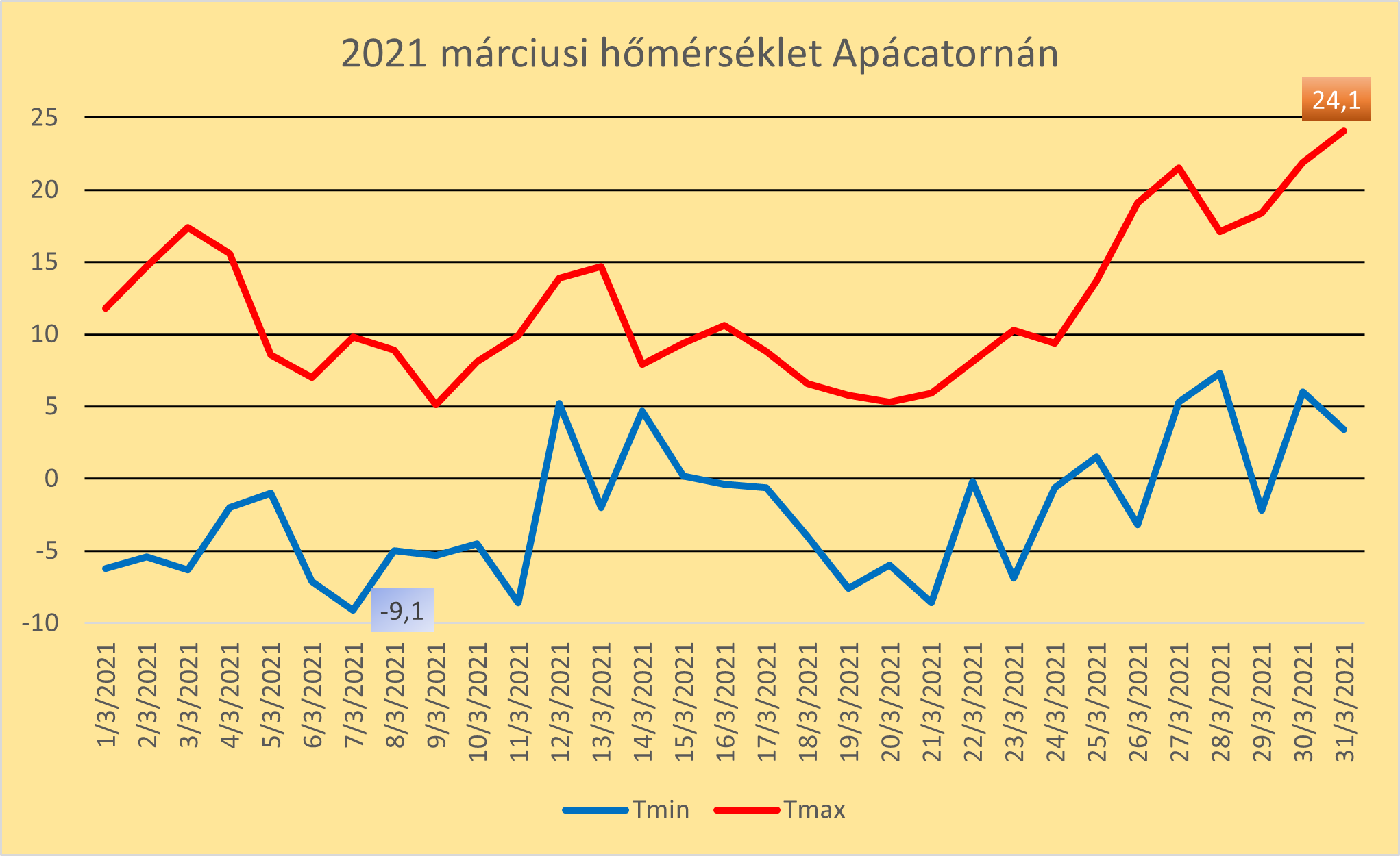 2021 harmadik hónapja nagyrészt szokatlanul hideg volt, csak az utolsó napokban kapcsolt rá a tavasz, sőt, héhány napon igazán télies idő uralkodott.